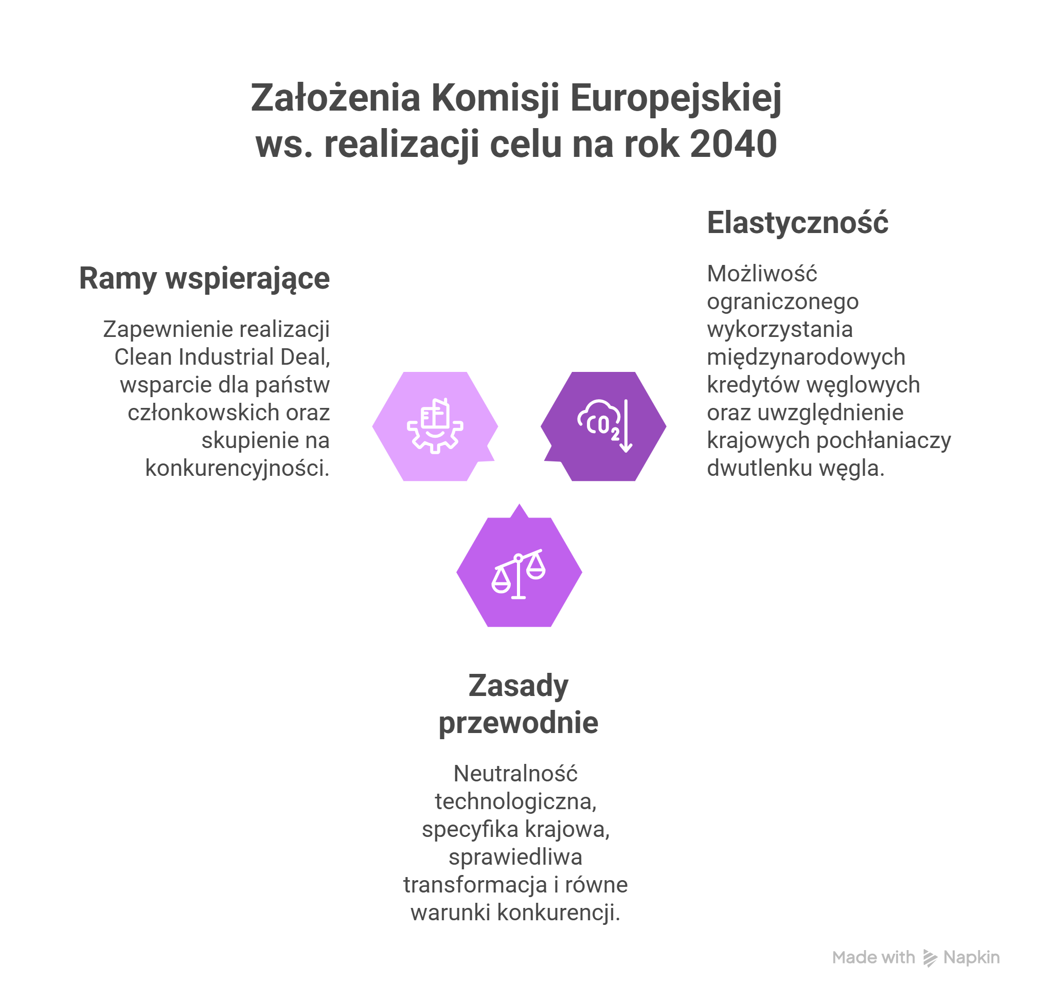 Ten element to ogromna rysa na szkle w bieżącej komunikacji Brukseli. Decyzję w sprawie celu na rok 2040 odsuwano w czasie i zamiary ogłoszono w momencie, gdy unijna dyskusja została przestawiona na inne tory. Nastąpiło to po ogłoszeniu serii inicjatyw dla gospodarki jak „Kompas Konkurencyjności”, Czystego Ładu Przemysłowego (CID, Clean Industrial Deal, znany też jako Pakt dla czystego przemysłu) czy CISAF. Wszystkie te przedsięwzięcia nie są wyłącznie nastawione na wzmocnienie przemysłu. Równolegle mają przyspieszyć dekarbonizację, a także wzmacniać niezależność energetyczną Wspólnoty.