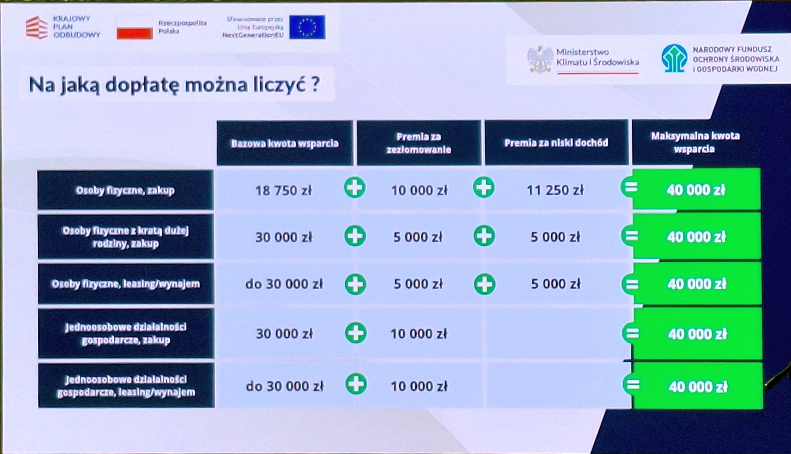 Poniżej tabela zaprezentowana podczas konferencji prasowej, na której ogłoszono inaugurację nowego programu. Pokazuje wszystkie możliwe warianty dopłat.