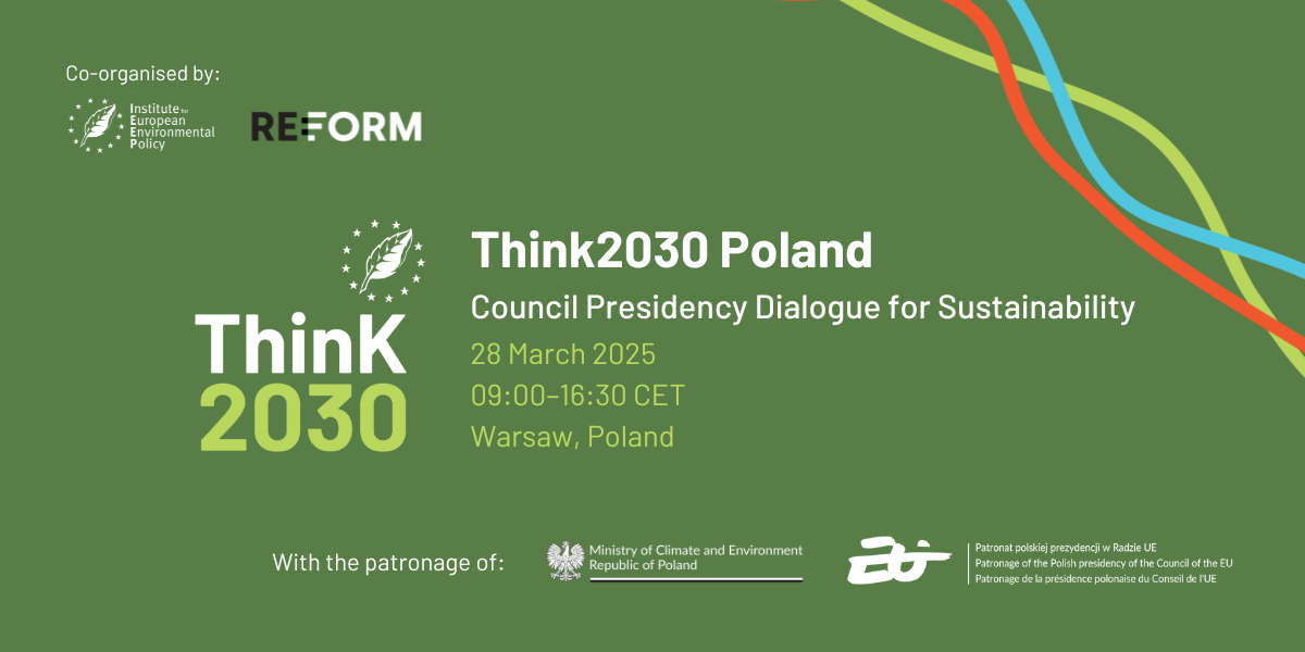 Think2030 Dialogue Poland: Towards a sustainable and secure Europe to konferencja odbywająca się bezpośrednio po nieformalnym spotkaniu ministrów środowiska UE pod koniec marca w Warszawie. Wydarzenie organizuje Instytut Reform we współpracy z europejskim think tankiem Institute for European Environmental Policy (IEEP) pod honorowym patronatem polskiej prezydencji oraz Ministerstwa Klimatu i Środowiska.